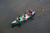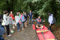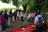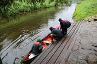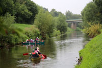 We arived at 10:00 in Telgte, where "Rucksack" team allready awaited us. After some basics the teams of each 3 members were formed and everyone was ready for a paddle. Everyone inklusive the rain that comes up after everyone starts aboard the canoe. Oh man that sucks! But wait! What kind of adventure is a memorable one? Exactly! That, under extreme condition is a memorable one ;)