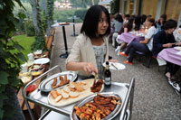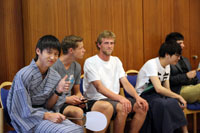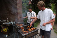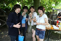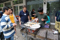 At the evening we had a nice BBQ with sausages and steak's. We stayed outside until it became dark and talked about this and that. Some girls of a japanese group came up with a "Shonen Jump" manga magazine that was took attention of others. On one page there was a nearly perv illustration that realy attracted the attention of the whole group. There is actually a funny photo of it, that you can find it in the gallery