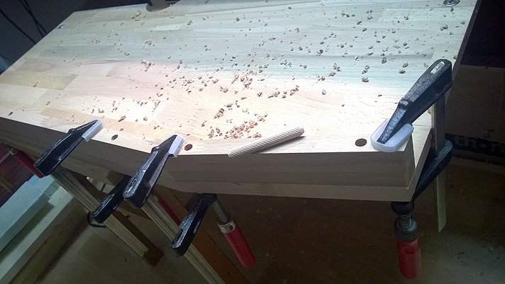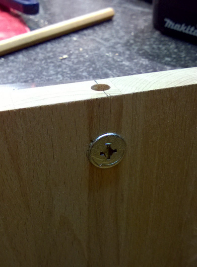 At the beginning I wanted to assemble the whole cabinet without any metal part. This would take much more time to made it and that would also mean, that I had to use a glue. Disasembeling would be not an option at all. Thats why I choosed to use the forniture connectors, as I already did on my other TV-Rack project.