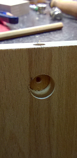 Drilling two borehole for the Hettich Rastex system in to a bleech tree is a hard procedure!
