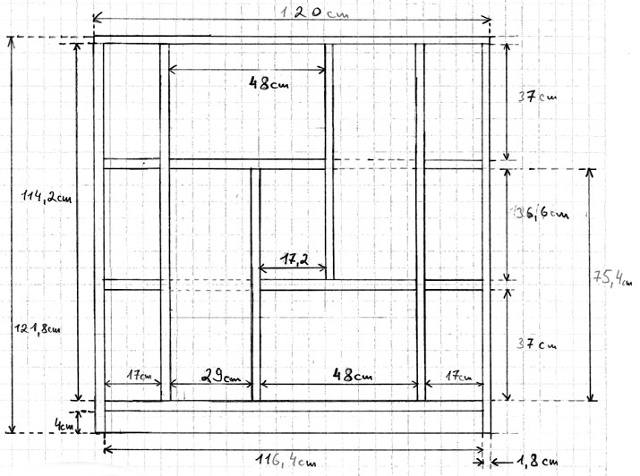 The outer dimensions are based on the standard size of wood plates you can get at DIY market. I didn't wanted to cut a lot and the dimensions of my update to B&O TV rack left no other choise for me.