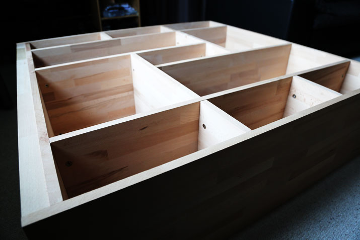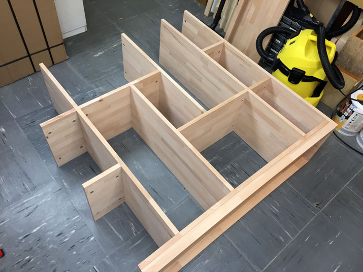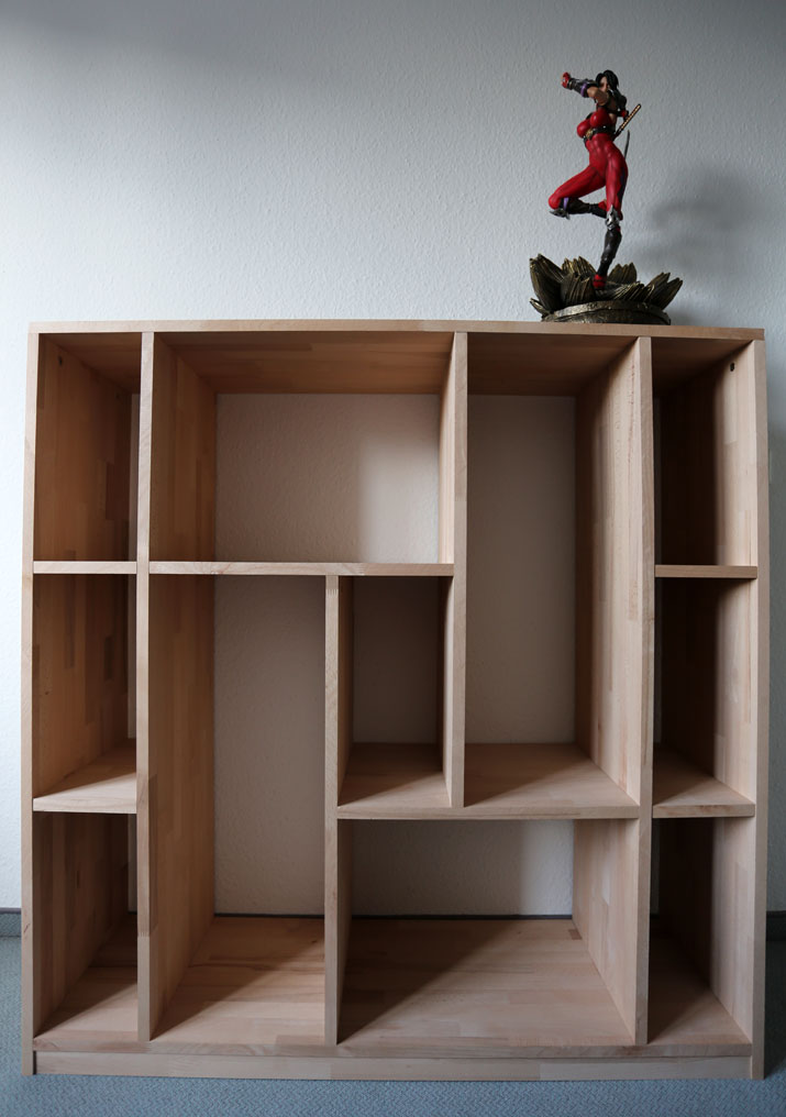 Talking about storing LaserDiscs and the type of shelf, that should store them, you would probably agree with me that it has to be very stable. That's why there were no other choise for me then bleach wood. And if you think right now on IKEA Kallax or Expedit .... just forget about it. In fact my first design was based on this shelfs, I just shorten the width of some section to prevent bending.